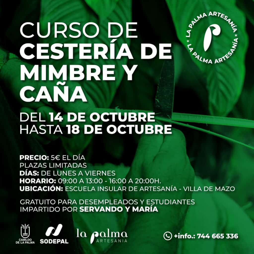 Cabe destacar que todas estas actividades se llevarán a cabo en la Escuela Insular de Artesanía, ubicada en la Villa de Mazo. Todos los talleres tendrán un coste de 5 euros, siendo gratuitos para estudiantes y personas en situación de desempleo.