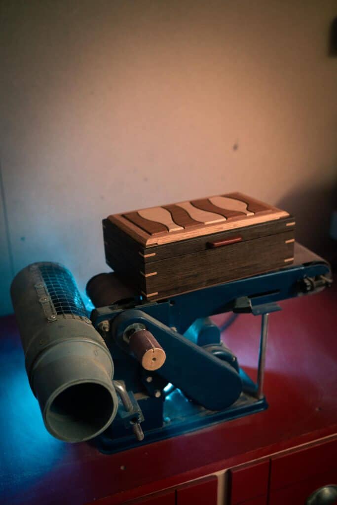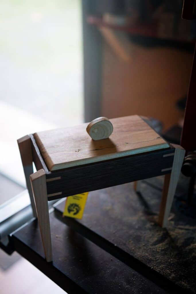 Se formó en la Escuela de Arte Manolo Blahnik y se dedica a este oficio desde los 17 años en su taller Cornamusa, trabaja «un poco a la forma tradicional de la carpintería canaria, con los mismos métodos de ‘engastre’, ensamblando las piezas sin utilizar tornillos, solo con el encaje de la madera», comenta.