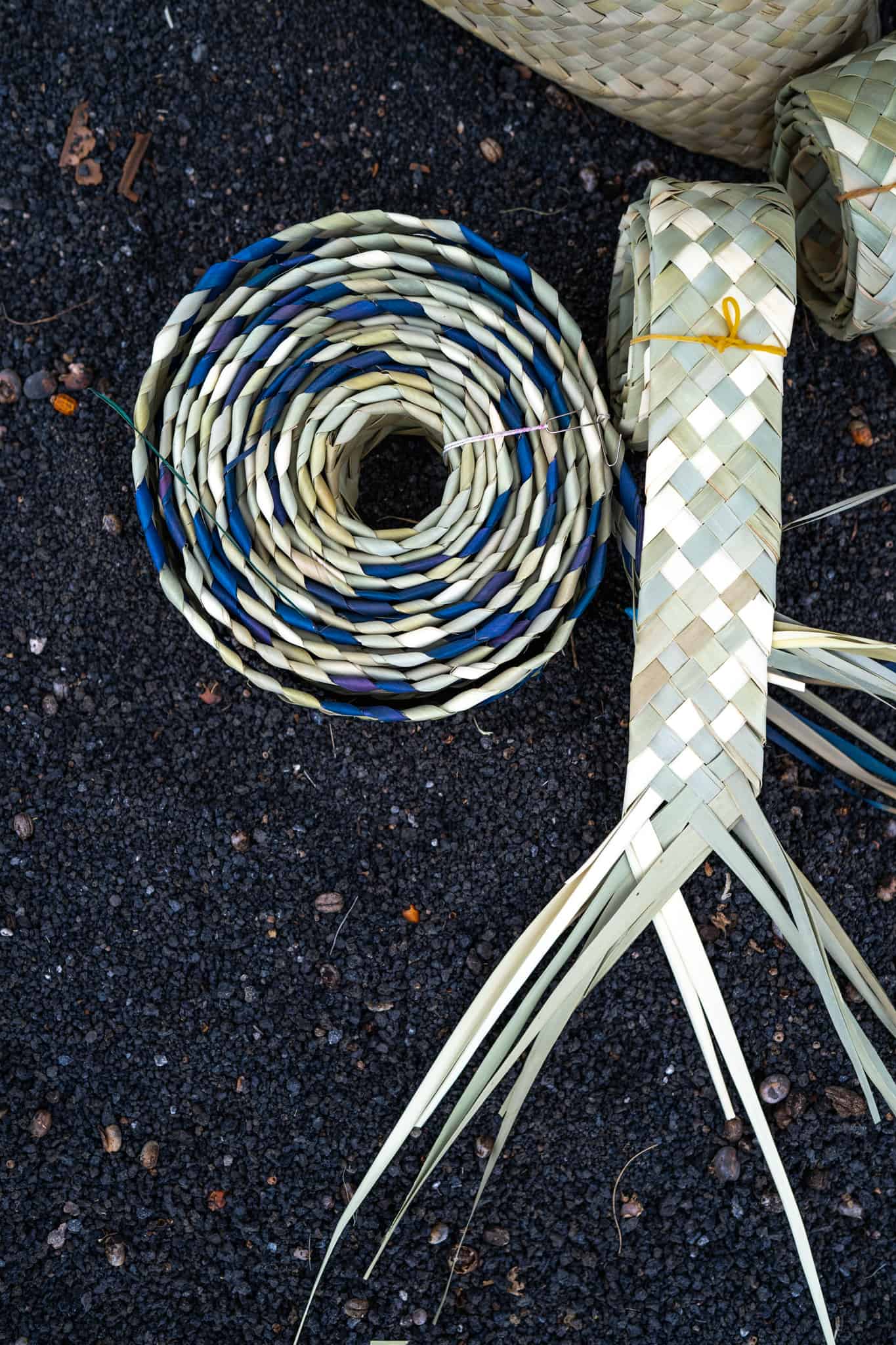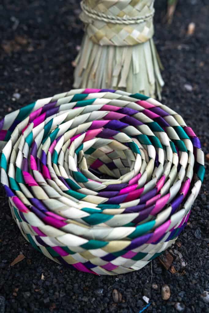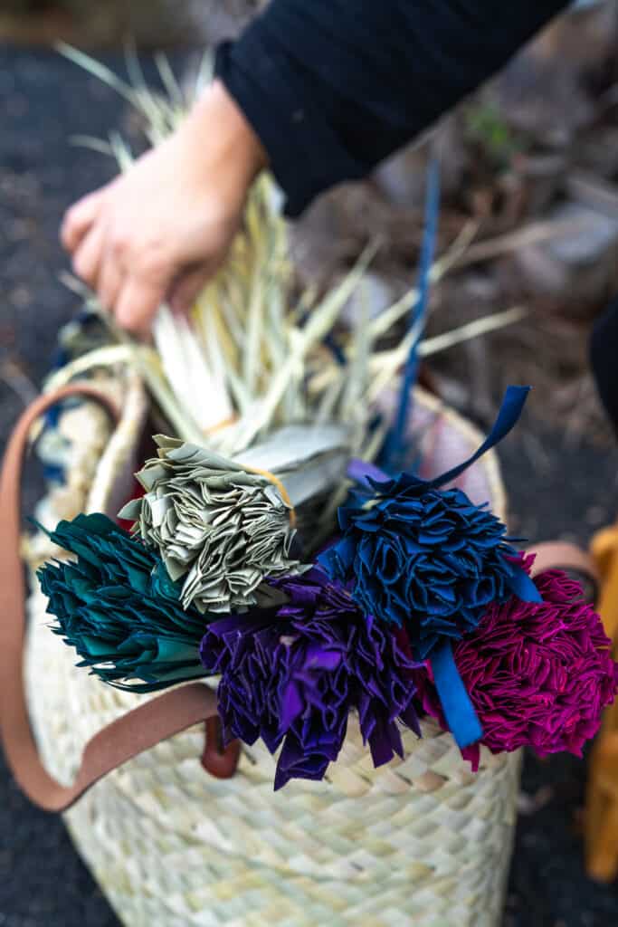 La cestería de palma utiliza como materia prima las hojas de la Palmera o Palma Canaria. Maira convierte la hoja de palmera en empleitas (moldes para queso), ceretas (cestas con asas), carteras, broches, diademas, etc.