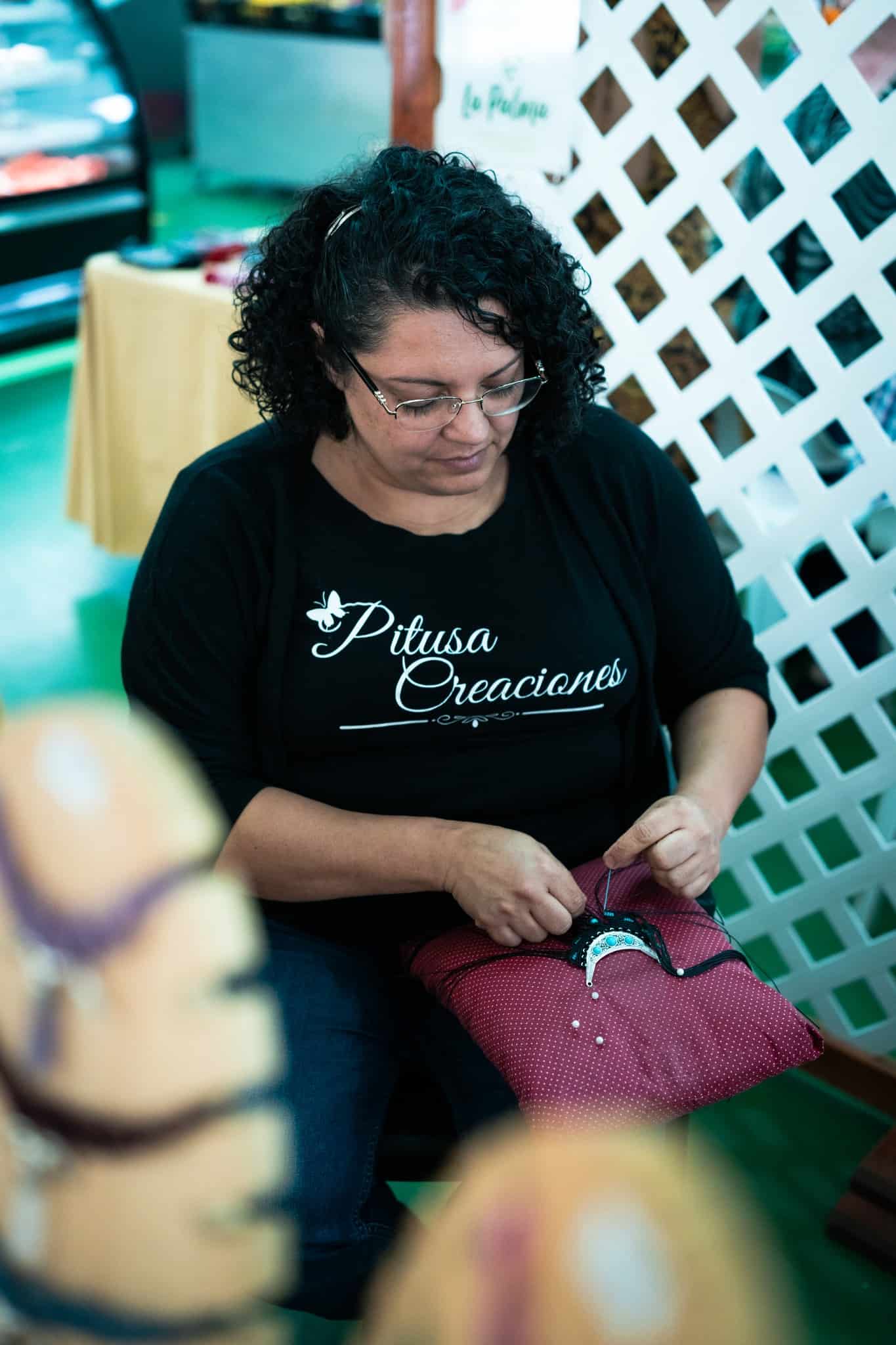Es una de las artesanas más activas y participativas dentro y fuera de La Palma. Pertenece a la junta directiva de la asociación de artesanos Arteba de Breña Alta y la marca que la define es Pitusa Creaciones.